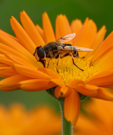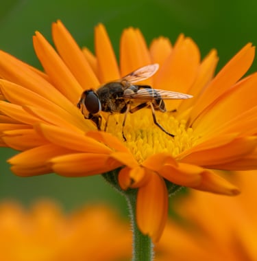 Elin ontdekte hoeveel bijen en vlinders er op de dropplanten afkwamen en richtte zich op de macro fotografie. Marijke zette ondertussen Susanne op de foto. Nils liet de drone op en maakte foto's vanuit de lucht. De gemaakte beelden gebruikt Susanne op haar website.