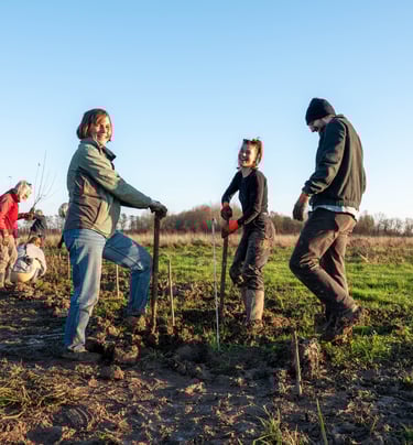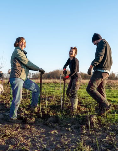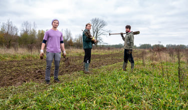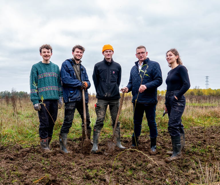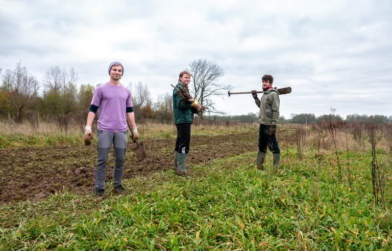 Dit zijn Katja Zweerus, Simon Verboom, Sacha Brons en Wytze Walstra: ook bekend als De Jonge Voedselbosboeren. Vier jonge ondernemers die ongezonde, uitgeputte landbouwgrond weer tot leven brengen. Natuur en voedselproductie hoeven geen gescheiden werelden te zijn. Hun missie is om juist die twee bij elkaar te brengen. In Elst leggen de boeren de komende jaren 6,5ha bos aan. In de winter '24/'25 werden met de hulp van veel vrijwilligers al 17.000 bomen geplant. Komende jaren volgen nog veel meer bomen.